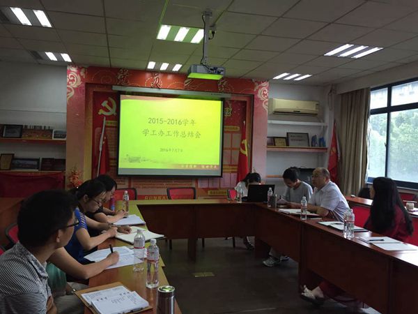 丁秀娇代表学工办做了2015-2016学年工作总结汇报。汇报以八组事务性数据开篇,并围绕高质量就业工程、优秀学生成长成才平台、党建工作特色化、文明寝室建设,学生活动文化内涵,良好学风建设等六个方面汇报了重点工作开展情况。并结合分院“十三五规划”总体工作安排,汇报了学工办下学年重点工作开展思路。