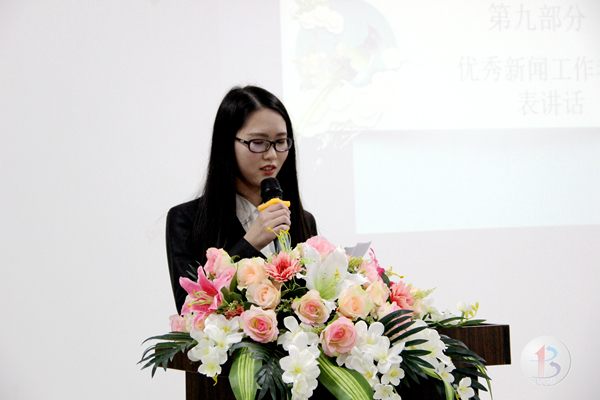 接下来,优秀干事代表凌正和优秀新闻工作者代表陈增妍分别发言,两位同学对自己过去一年在新闻中心的所见所闻作了总结,同时也表达了自己对新闻中心未来发展的期望。商学院新闻中心得到了广大老师和同学们的认可,是每一届成员共同努力的结果,而新闻中心的发展没有停止,也没有极限,只有不断追求,不断进步,不断超越。