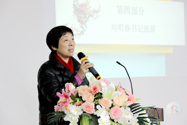 紧接着,商学院党委书记刘明睿老师上台致辞,刘书记已连续三年出席商学院新闻中心年会。刘书记说,正是有了新闻中心同学们的辛苦付出,分院所发生的重要事项及发展成就才能及时地向外界传递。她对圆满完成工作的学生干部和干事们表达了感谢。当然,新闻中心的发展离不开老师们的培训和指导,正是指导老师们将经验和技能传授给了中心同学们,同学们才能尽快适应工作,融入新闻中心这个大家庭。刘书记希望同学们通过不断实践来提高自己的业务水准,更能关心商学院的发展,用心去做每一篇报道,让每一篇报道的效能发挥到极致。